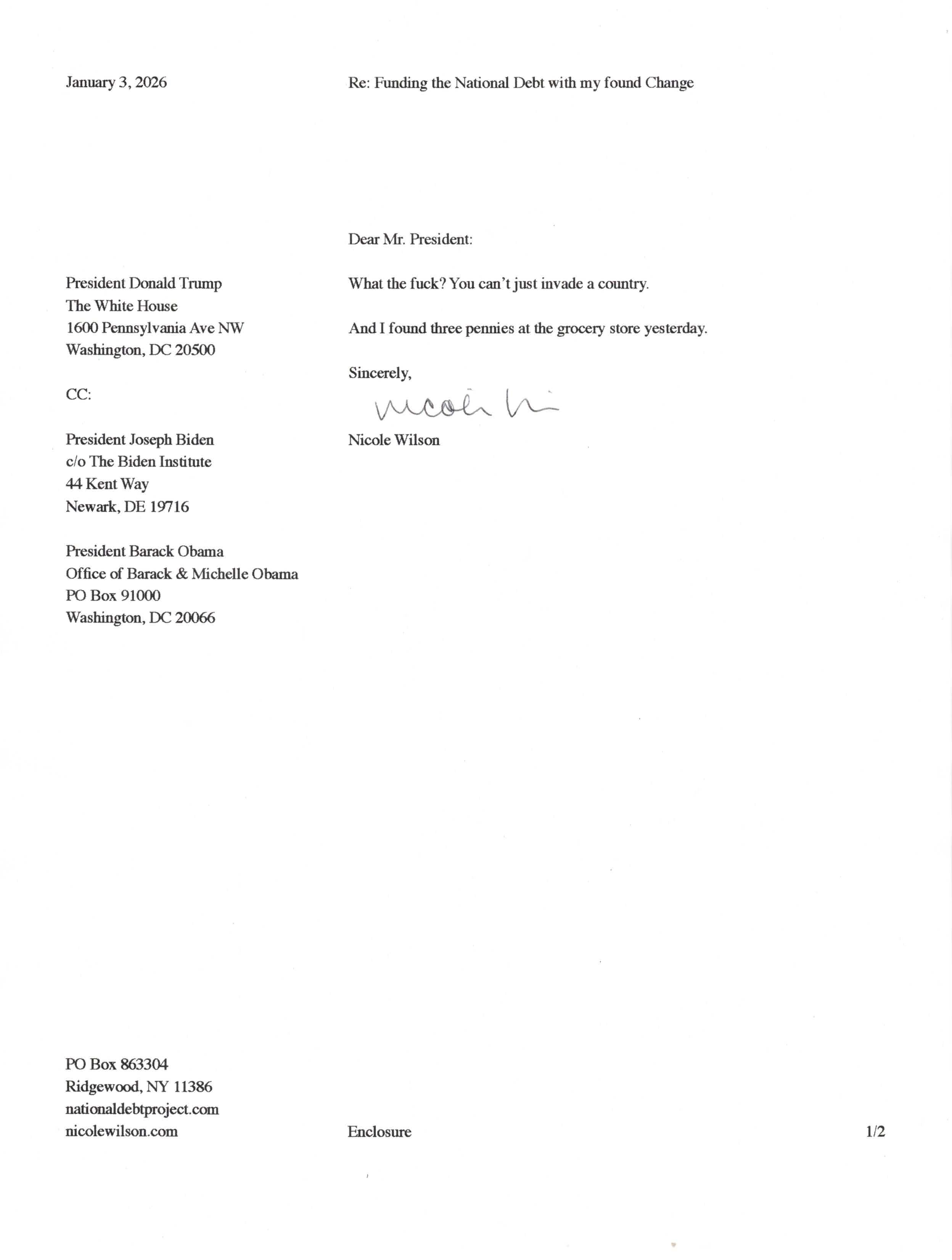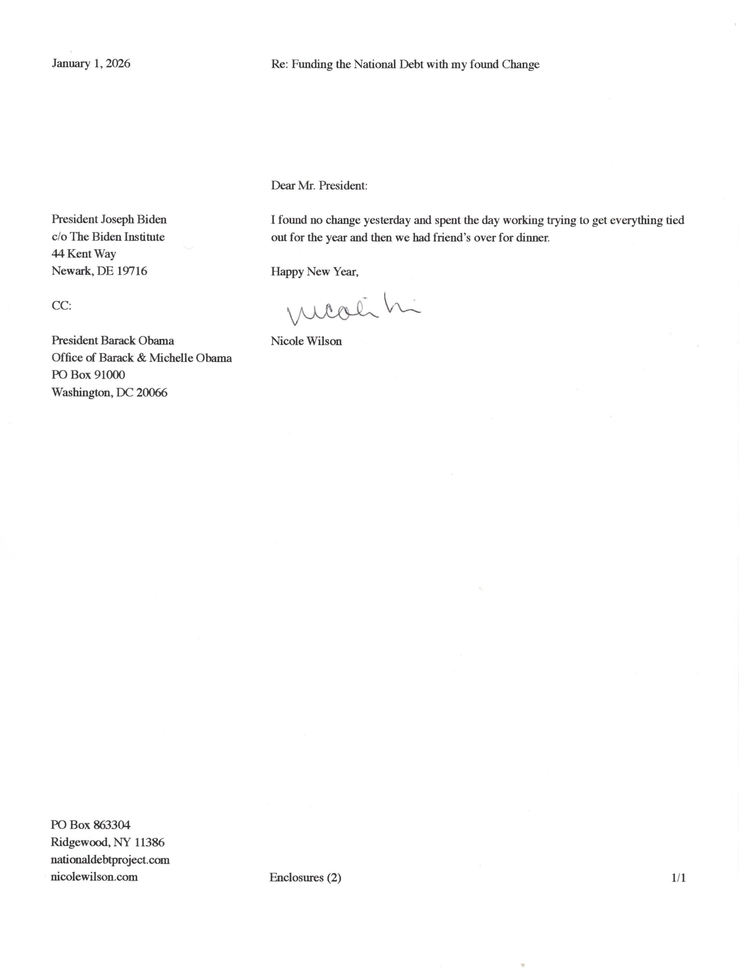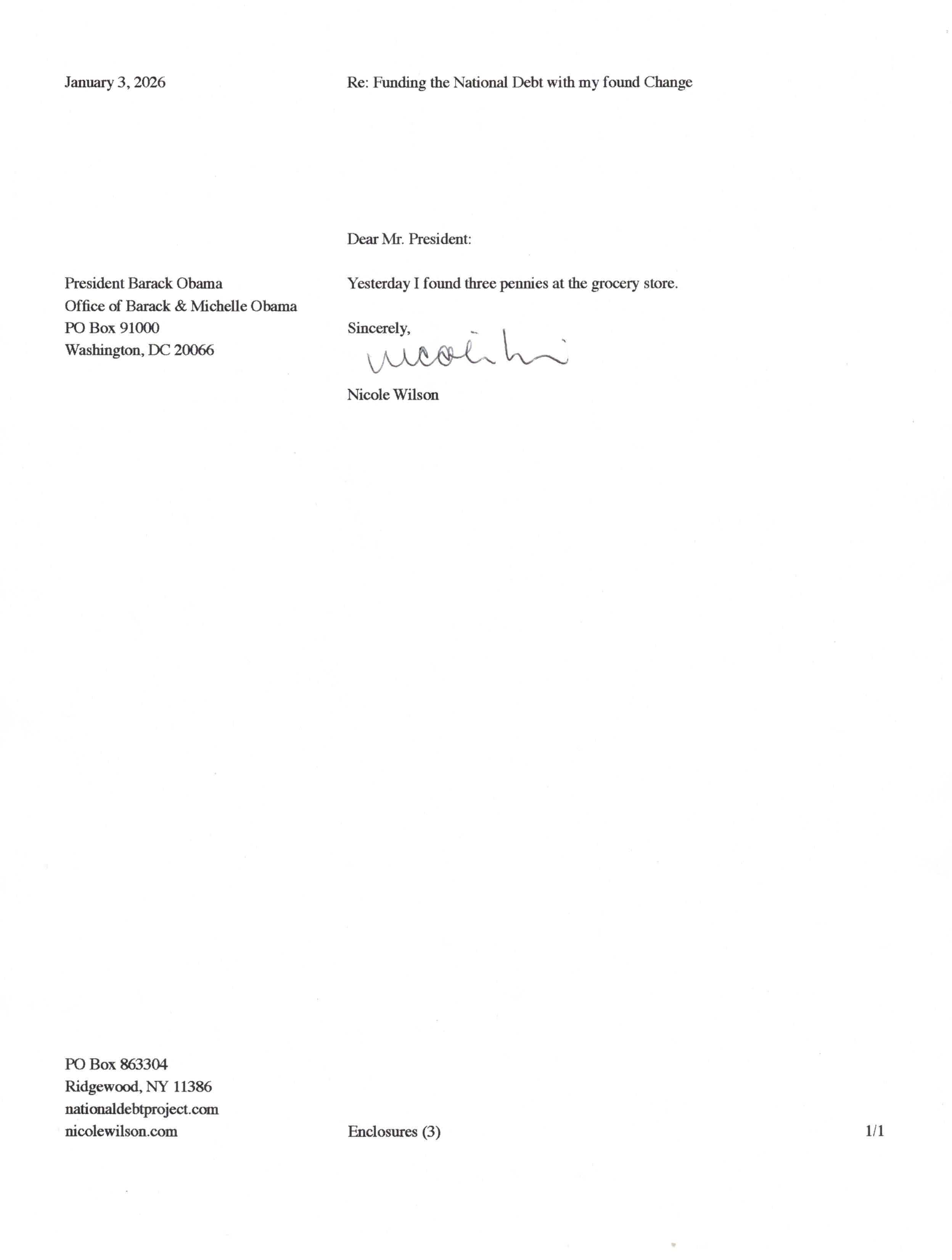 Yet, as I went through each day, I found at least one discarded penny. So, since August 31, 2009, I have sent my found change daily via certified mail to the Bureau of the Fiscal Service (previously the Bureau of the Public Debt), a sector of the Treasury Department whose purpose is to manage the deficit. If by some chance I do not find any change one day, then I send a penny of my own.