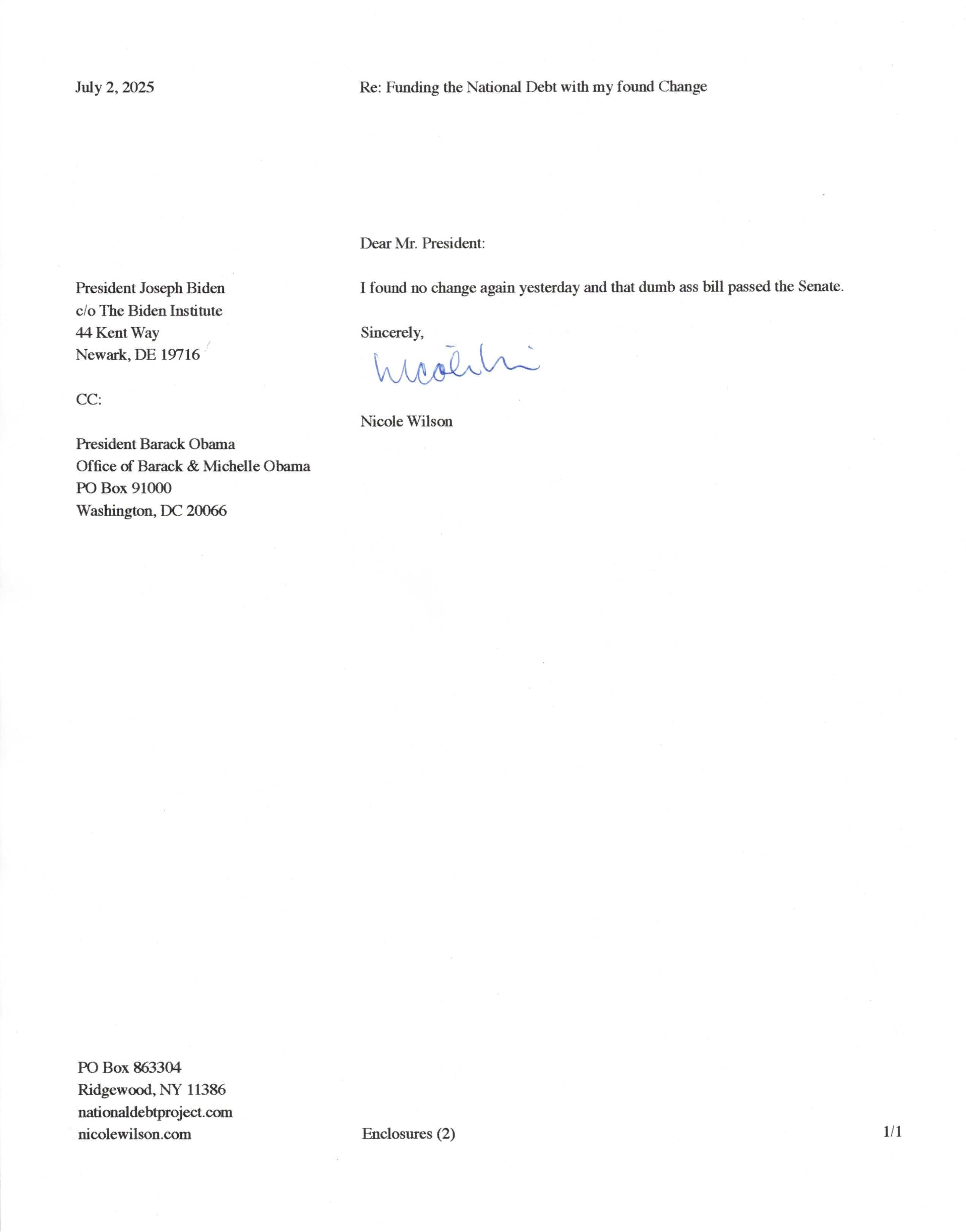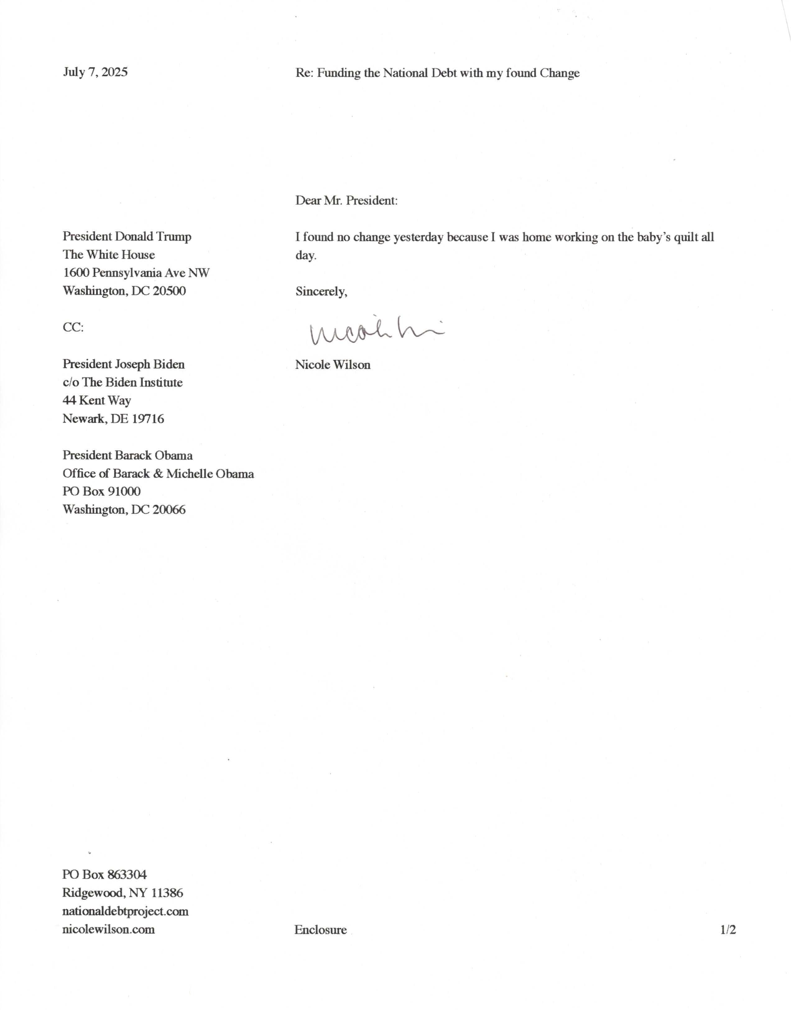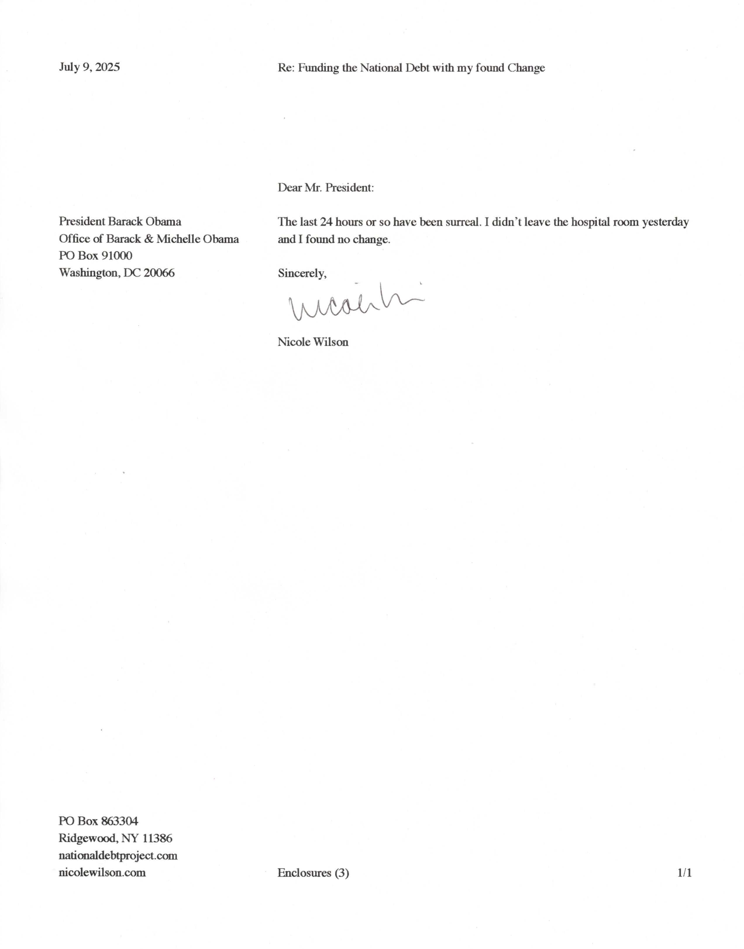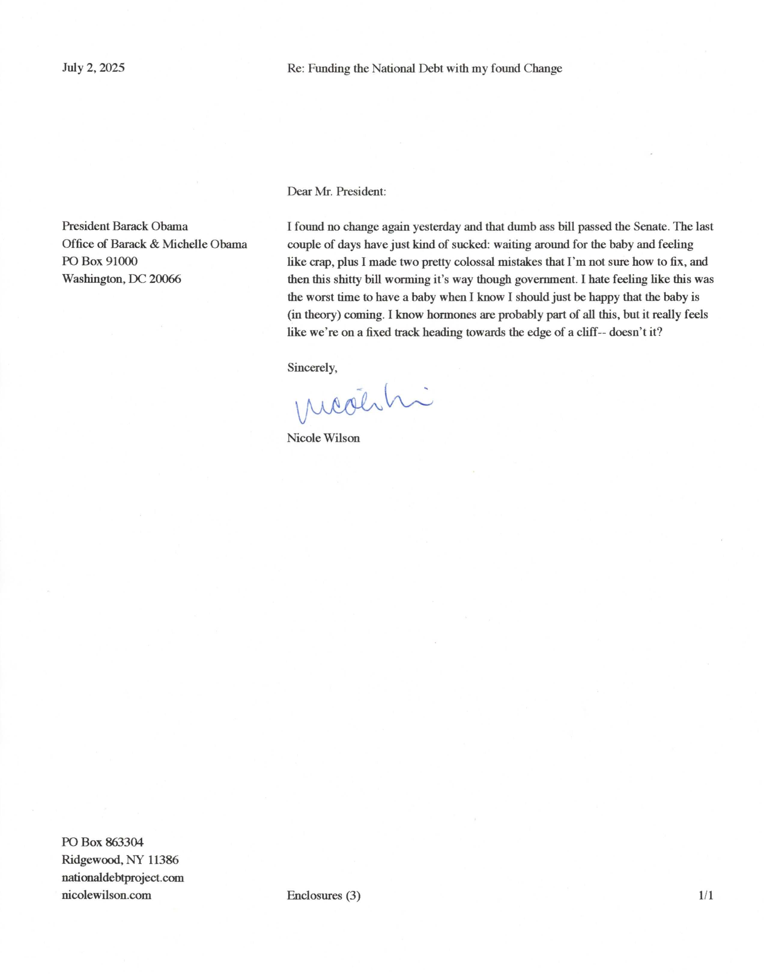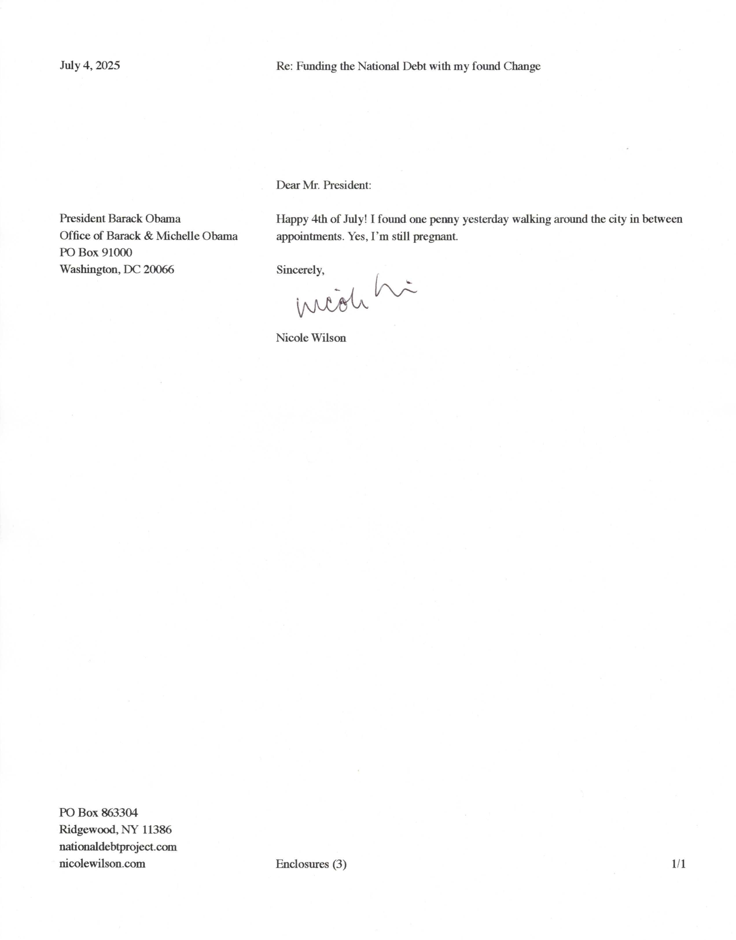 Yet, as I went through each day, I found at least one discarded penny. So, since August 31, 2009, I have sent my found change daily via certified mail to the Bureau of the Fiscal Service (previously the Bureau of the Public Debt), a sector of the Treasury Department whose purpose is to manage the deficit. If by some chance I do not find any change one day, then I send a penny of my own.