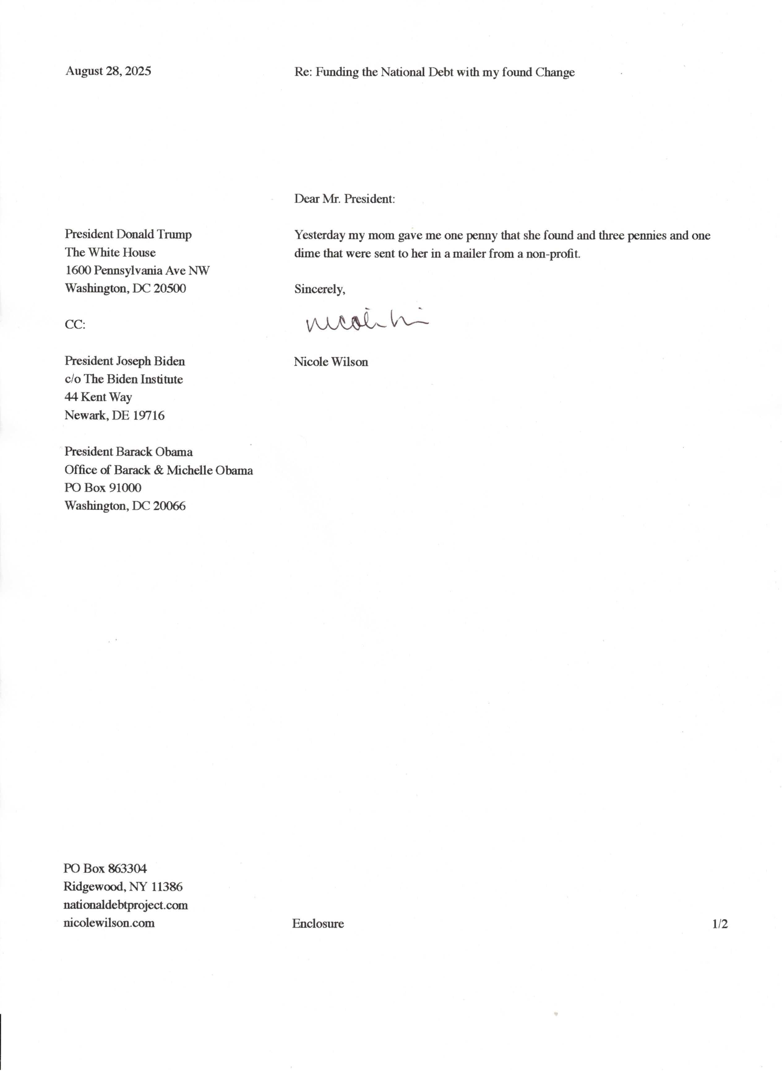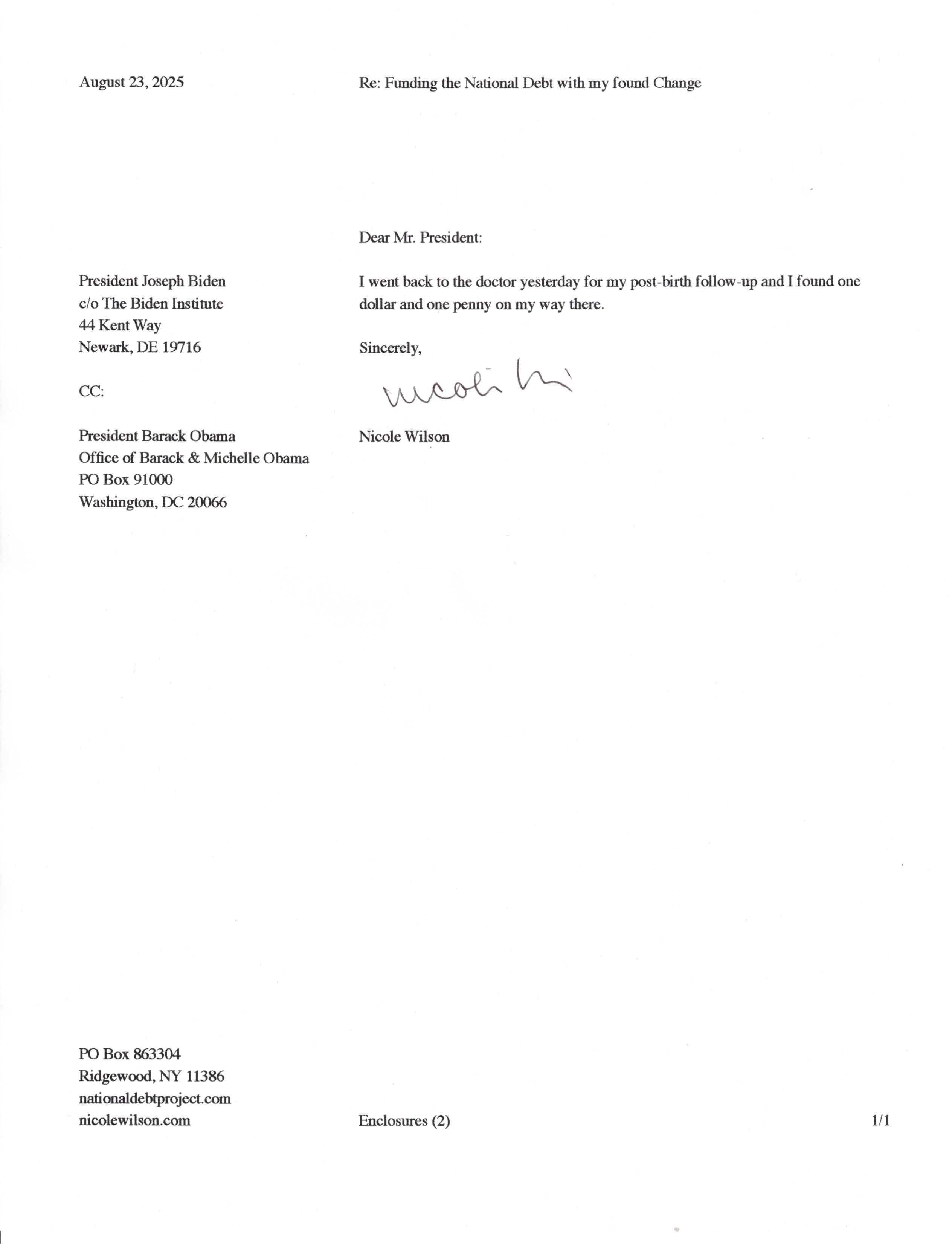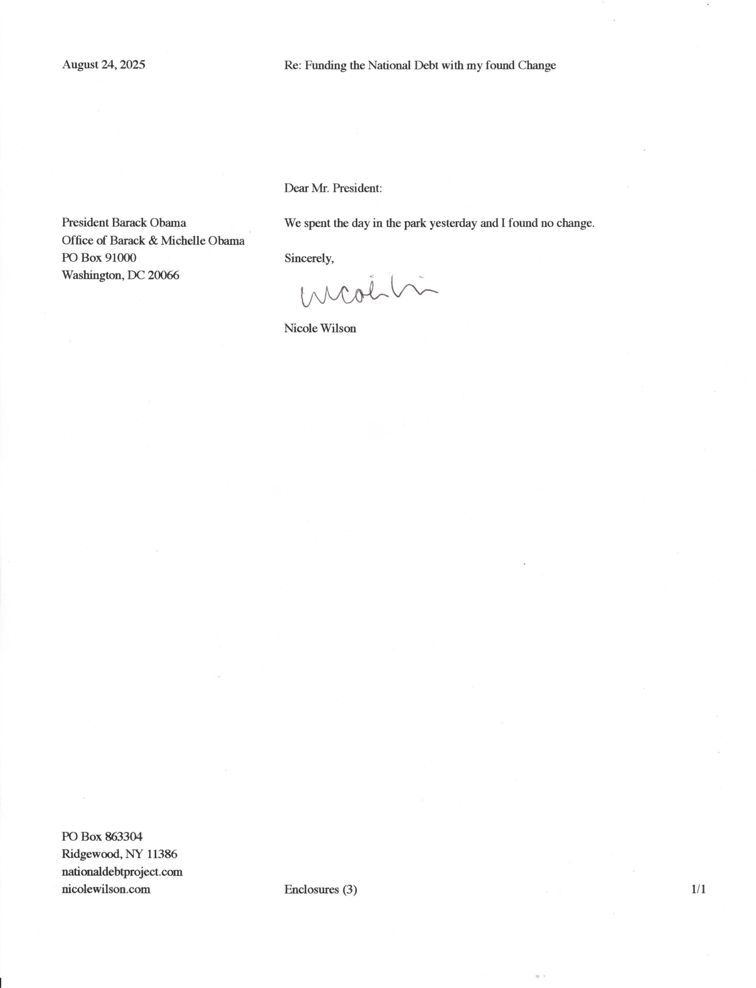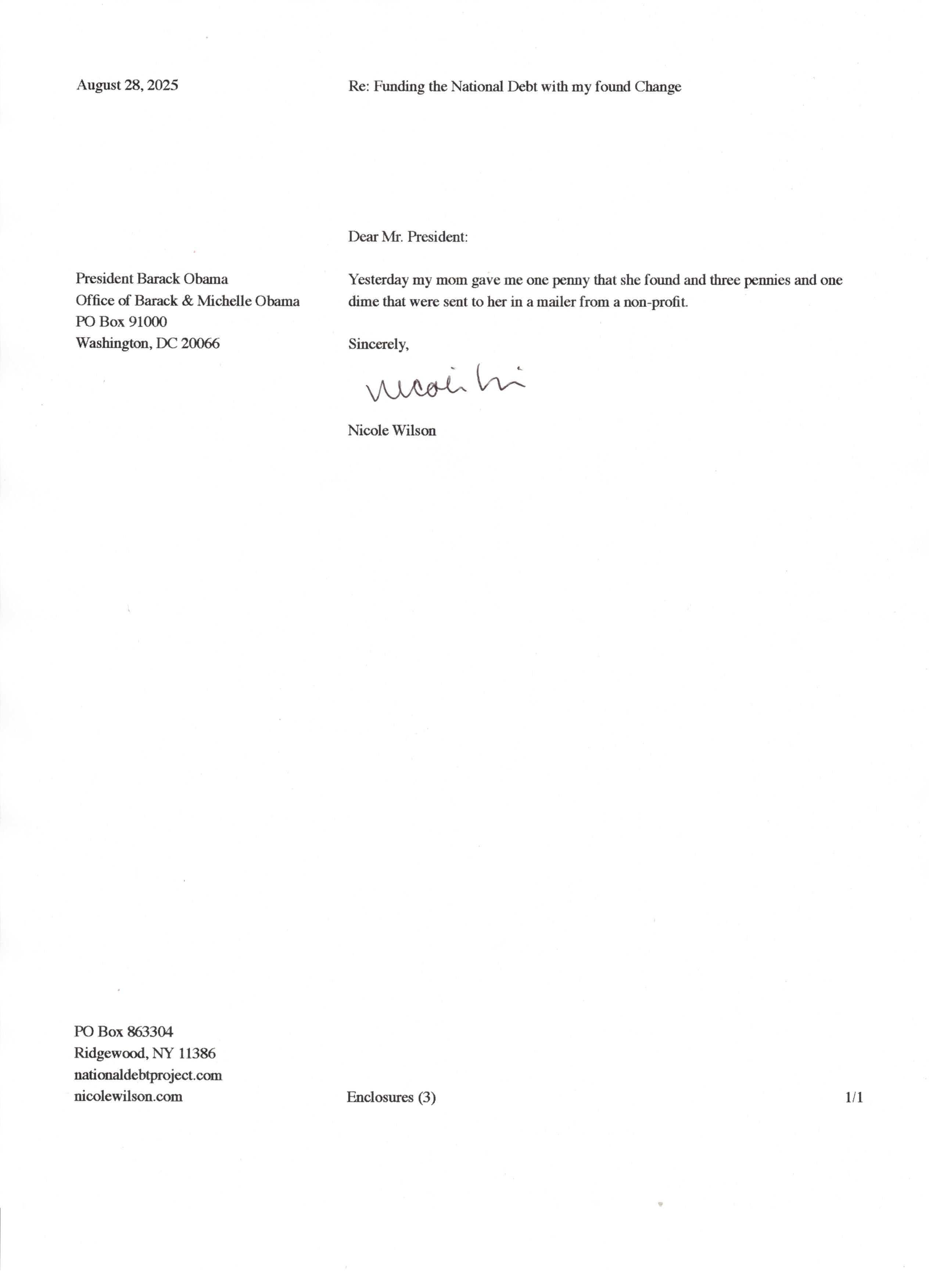 Yet, as I went through each day, I found at least one discarded penny. So, since August 31, 2009, I have sent my found change daily via certified mail to the Bureau of the Fiscal Service (previously the Bureau of the Public Debt), a sector of the Treasury Department whose purpose is to manage the deficit. If by some chance I do not find any change one day, then I send a penny of my own.