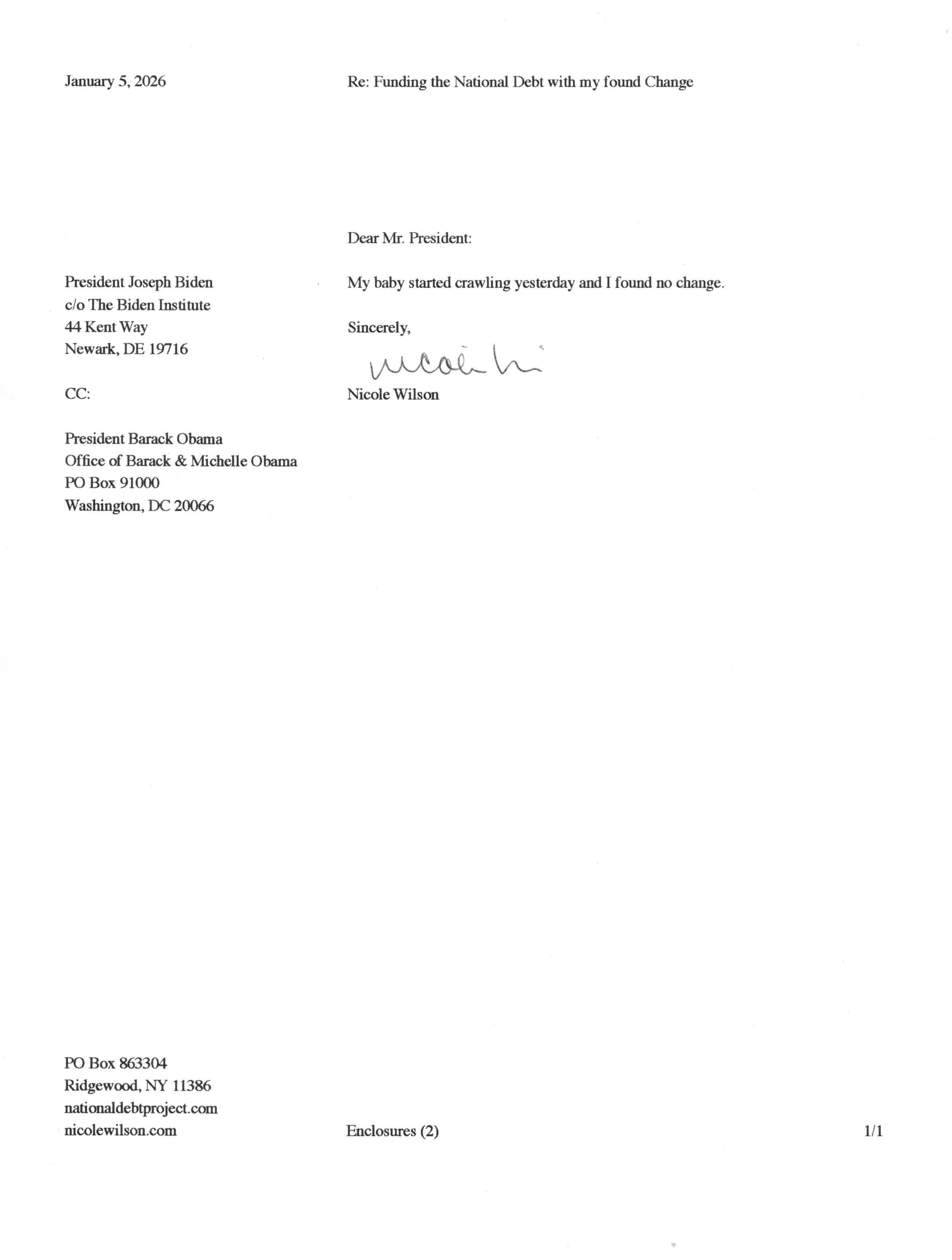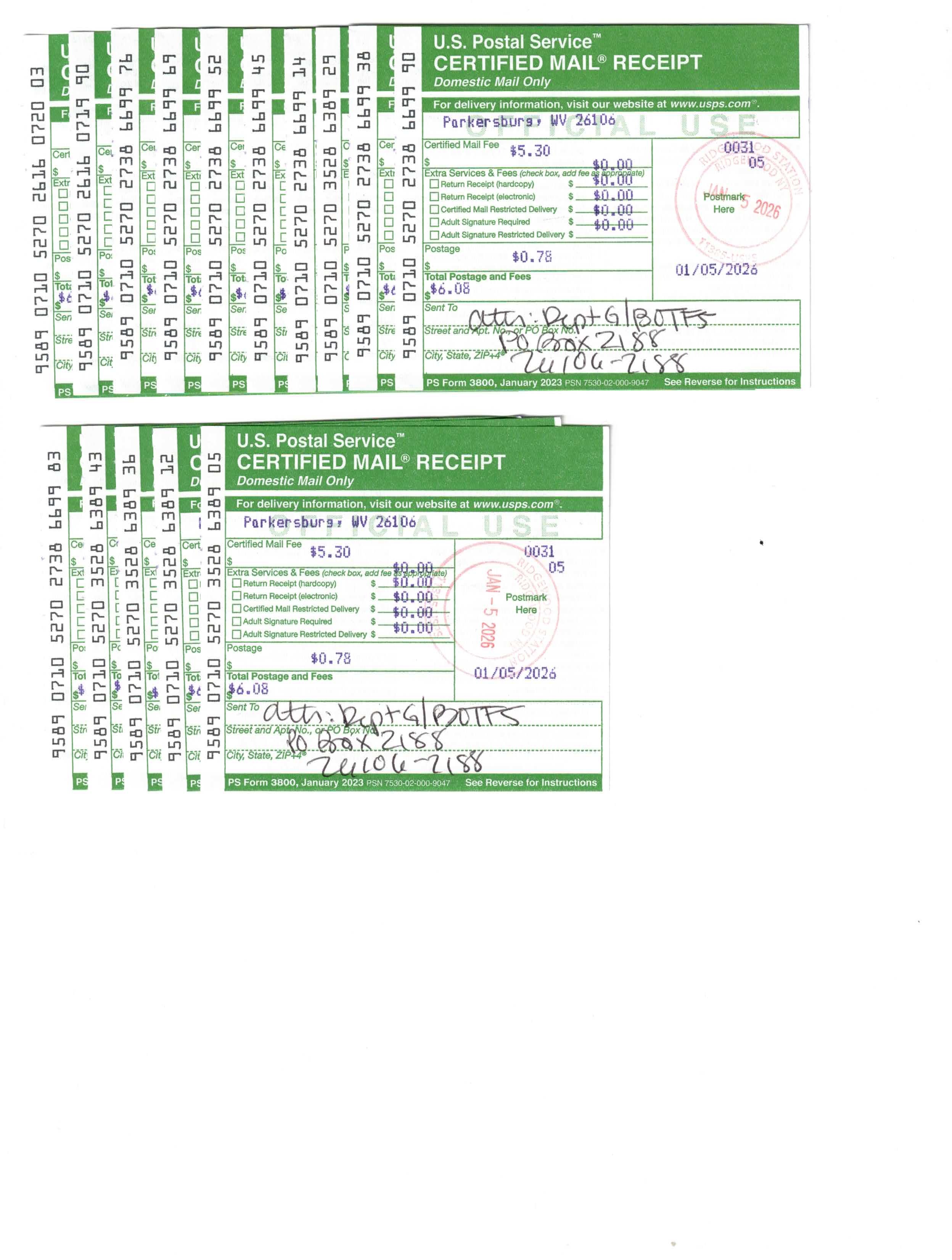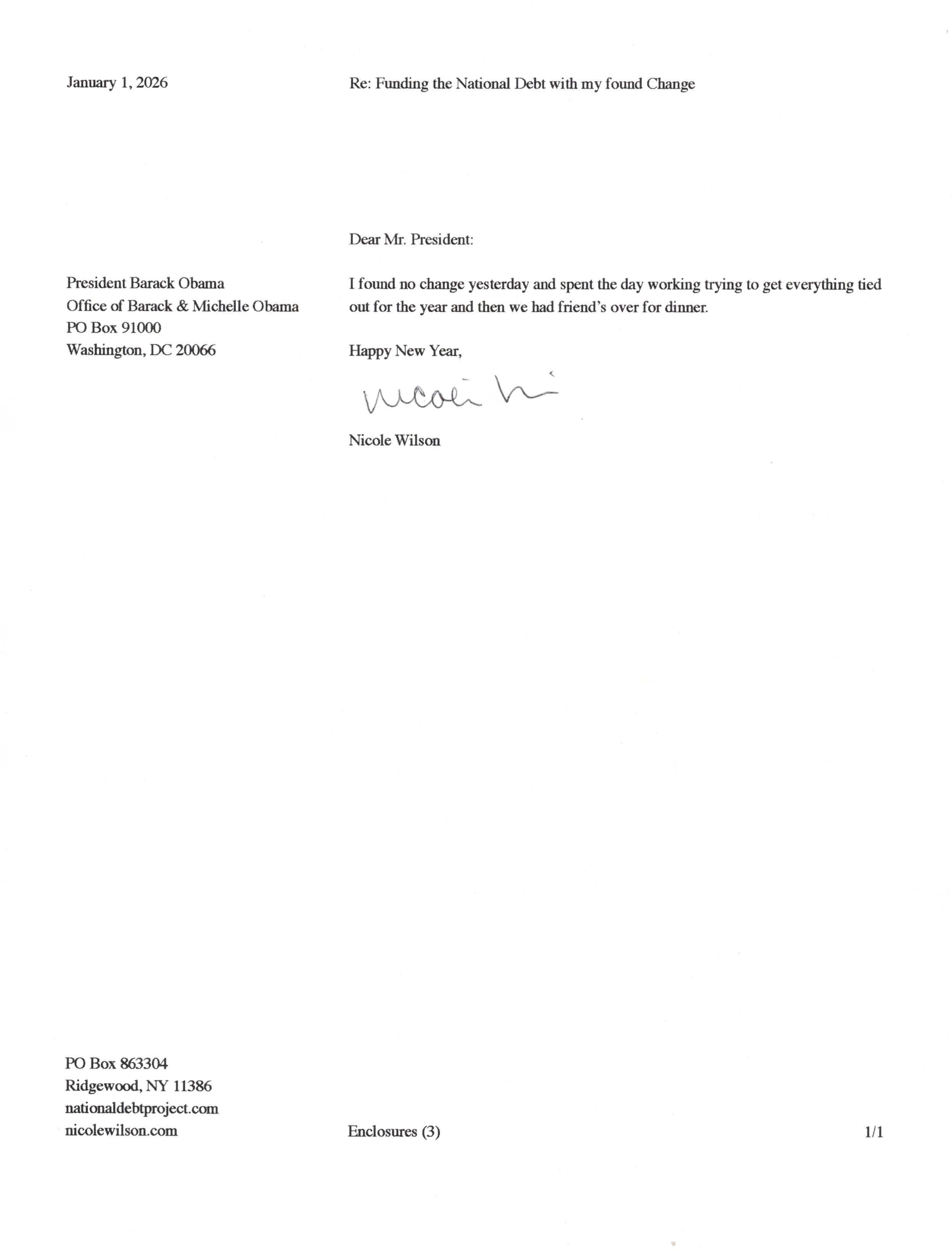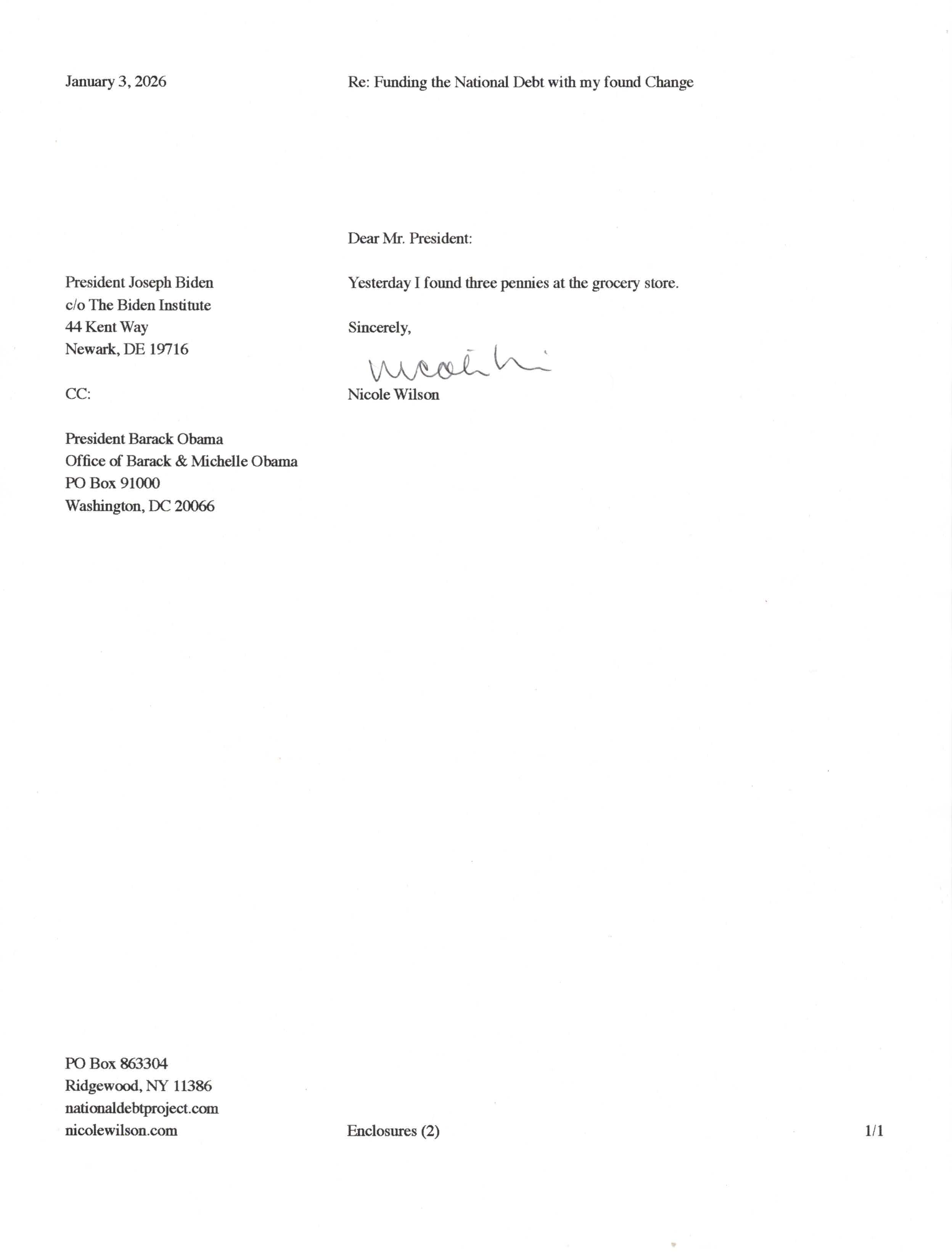 Yet, as I went through each day, I found at least one discarded penny. So, since August 31, 2009, I have sent my found change daily via certified mail to the Bureau of the Fiscal Service (previously the Bureau of the Public Debt), a sector of the Treasury Department whose purpose is to manage the deficit. If by some chance I do not find any change one day, then I send a penny of my own.