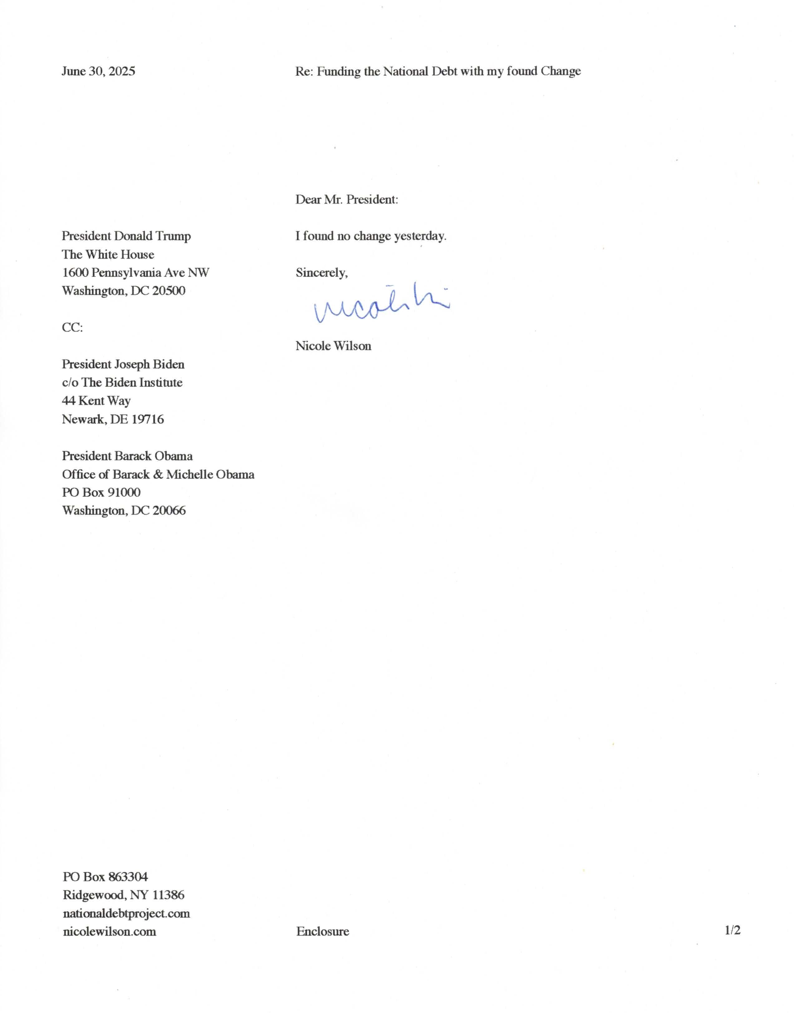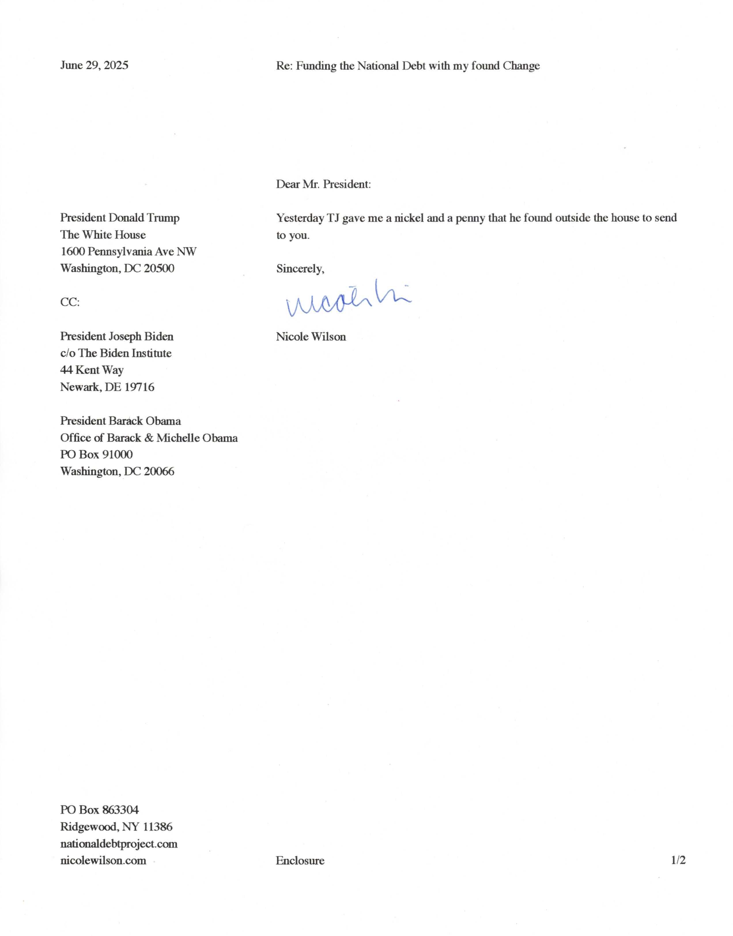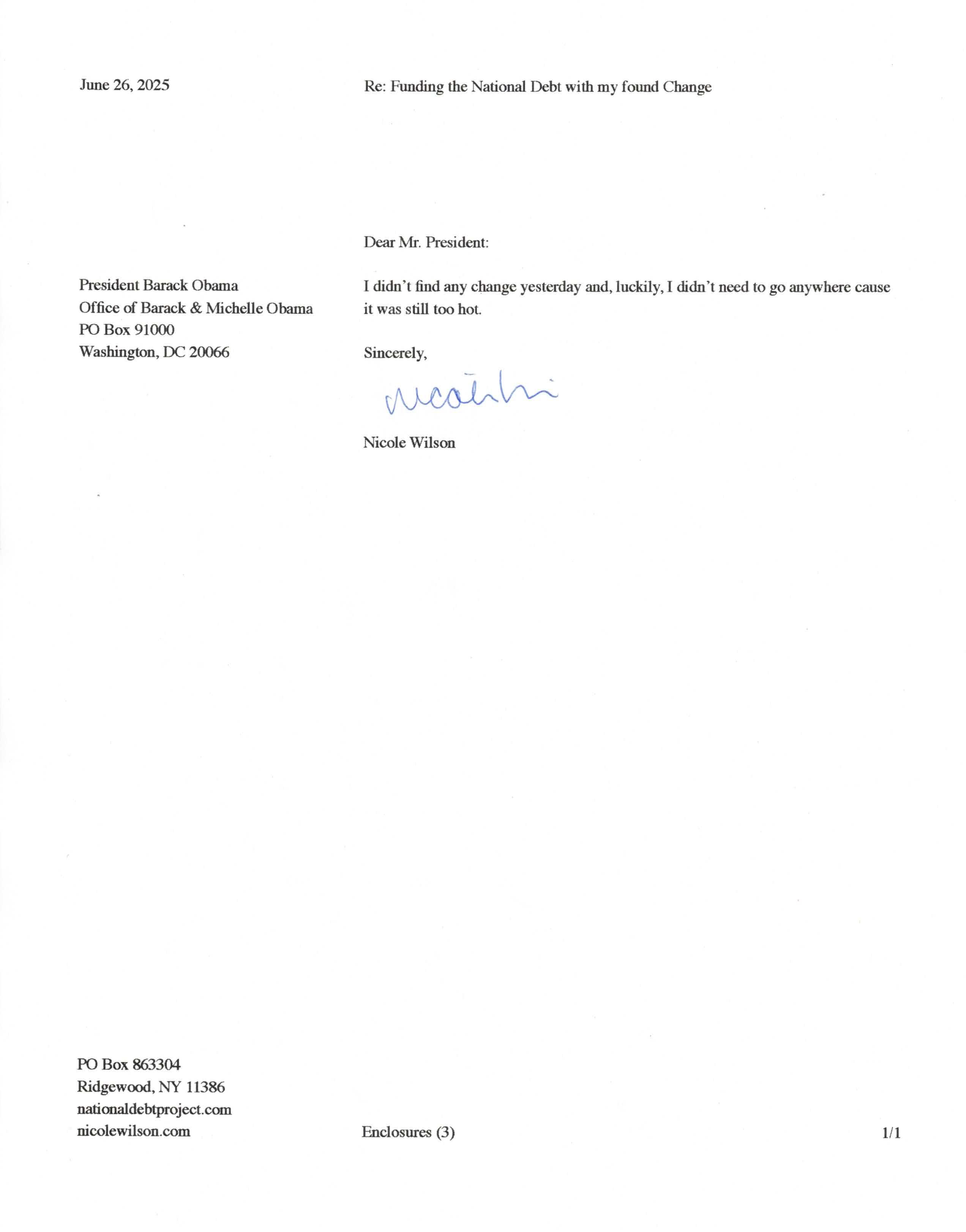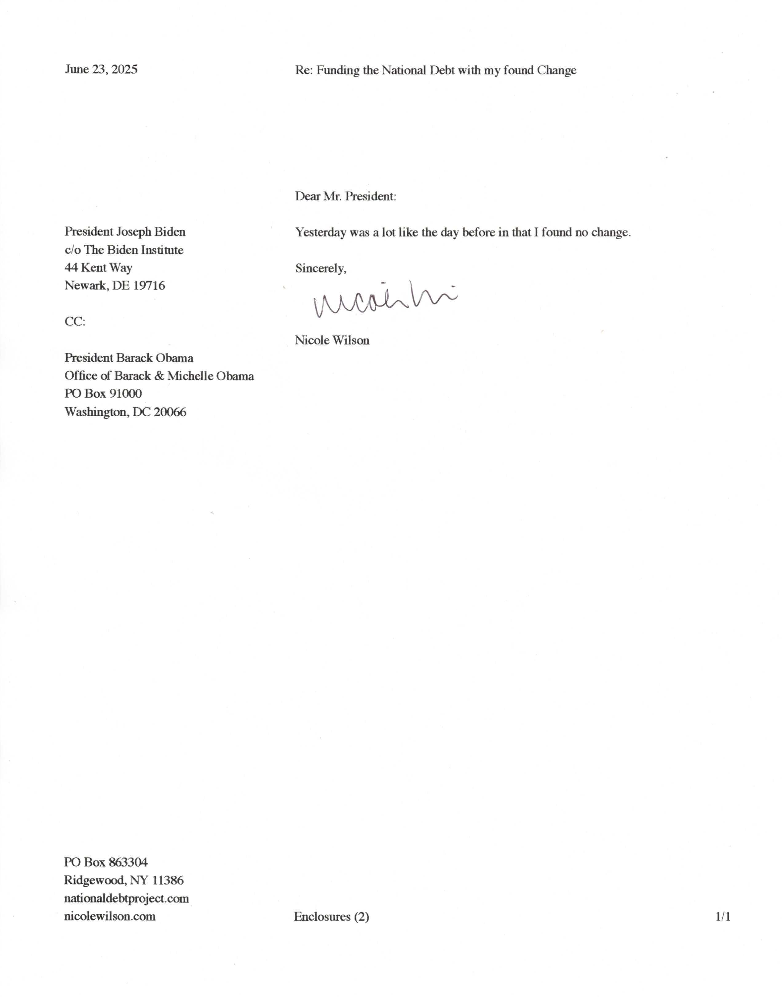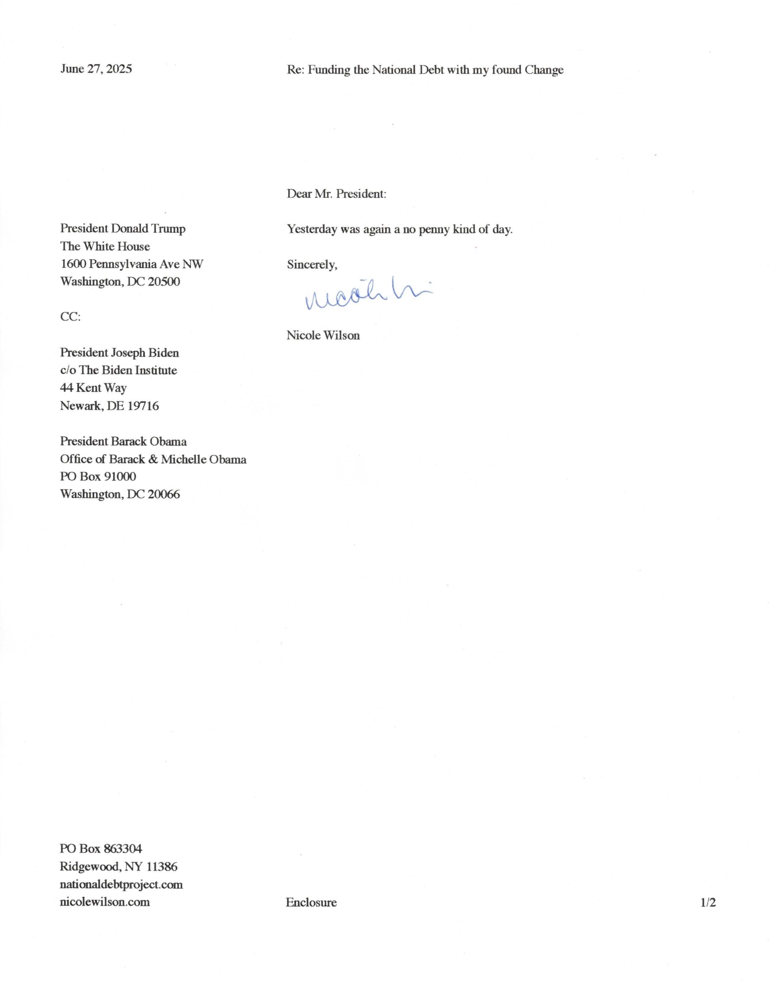 Yet, as I went through each day, I found at least one discarded penny. So, since August 31, 2009, I have sent my found change daily via certified mail to the Bureau of the Fiscal Service (previously the Bureau of the Public Debt), a sector of the Treasury Department whose purpose is to manage the deficit. If by some chance I do not find any change one day, then I send a penny of my own.