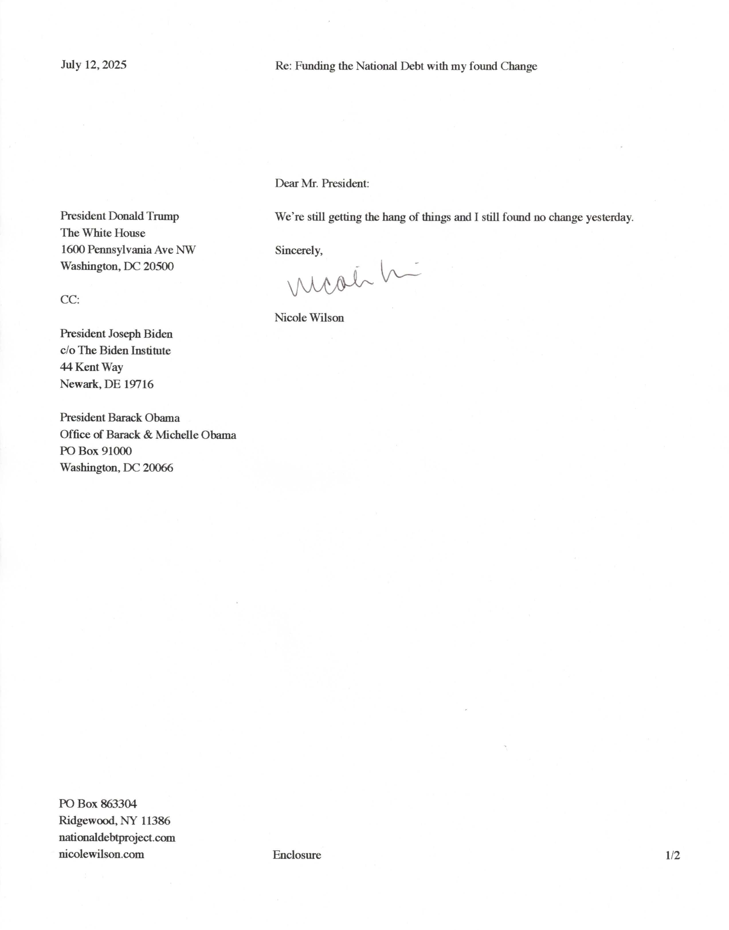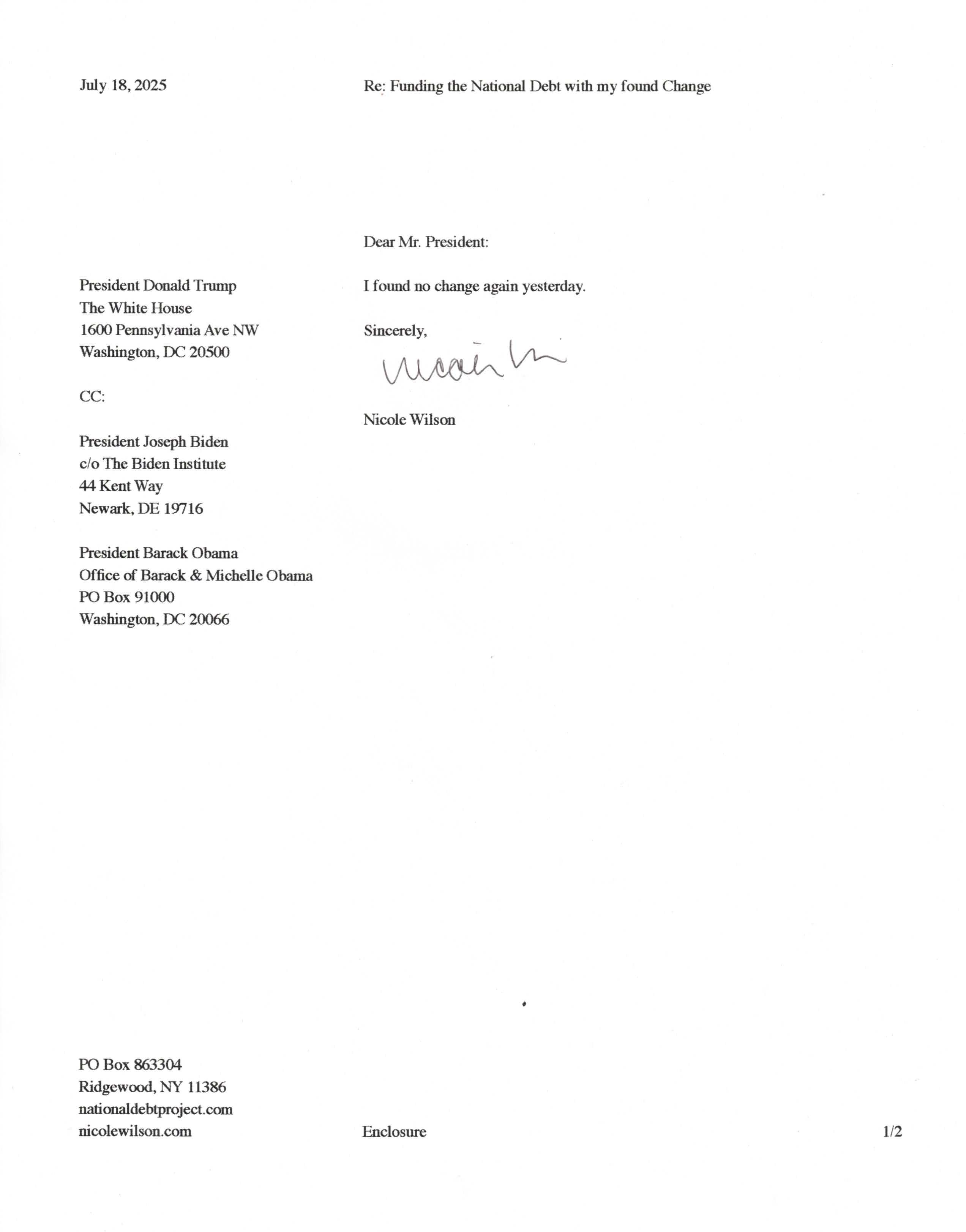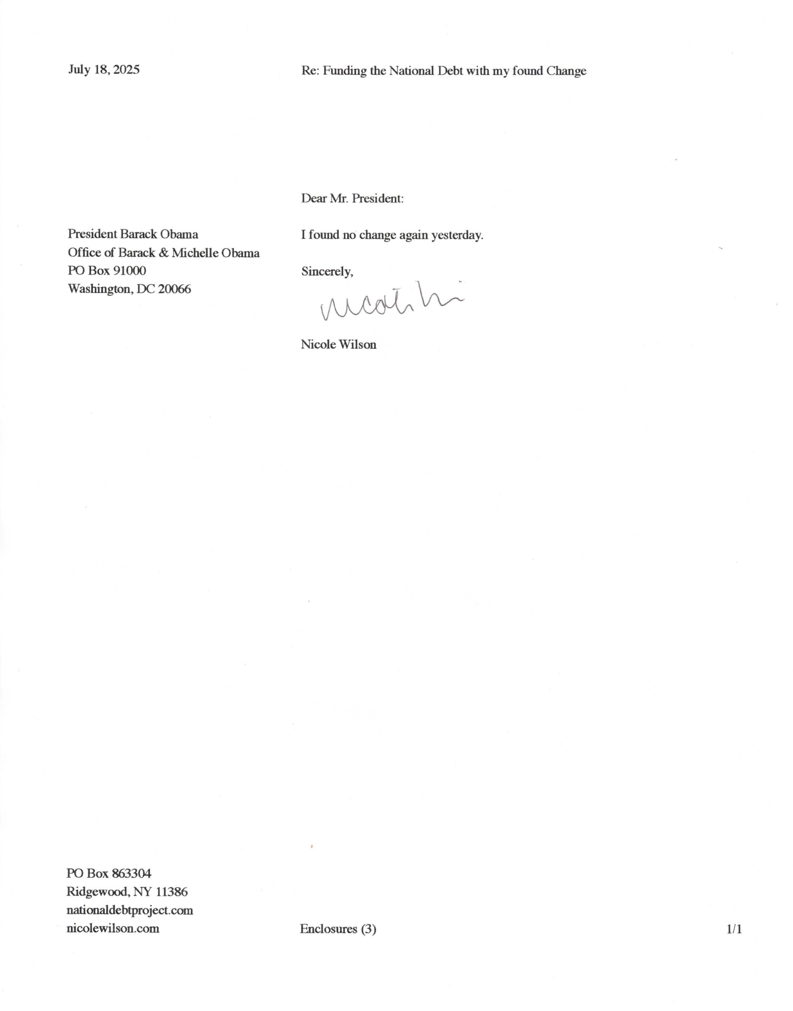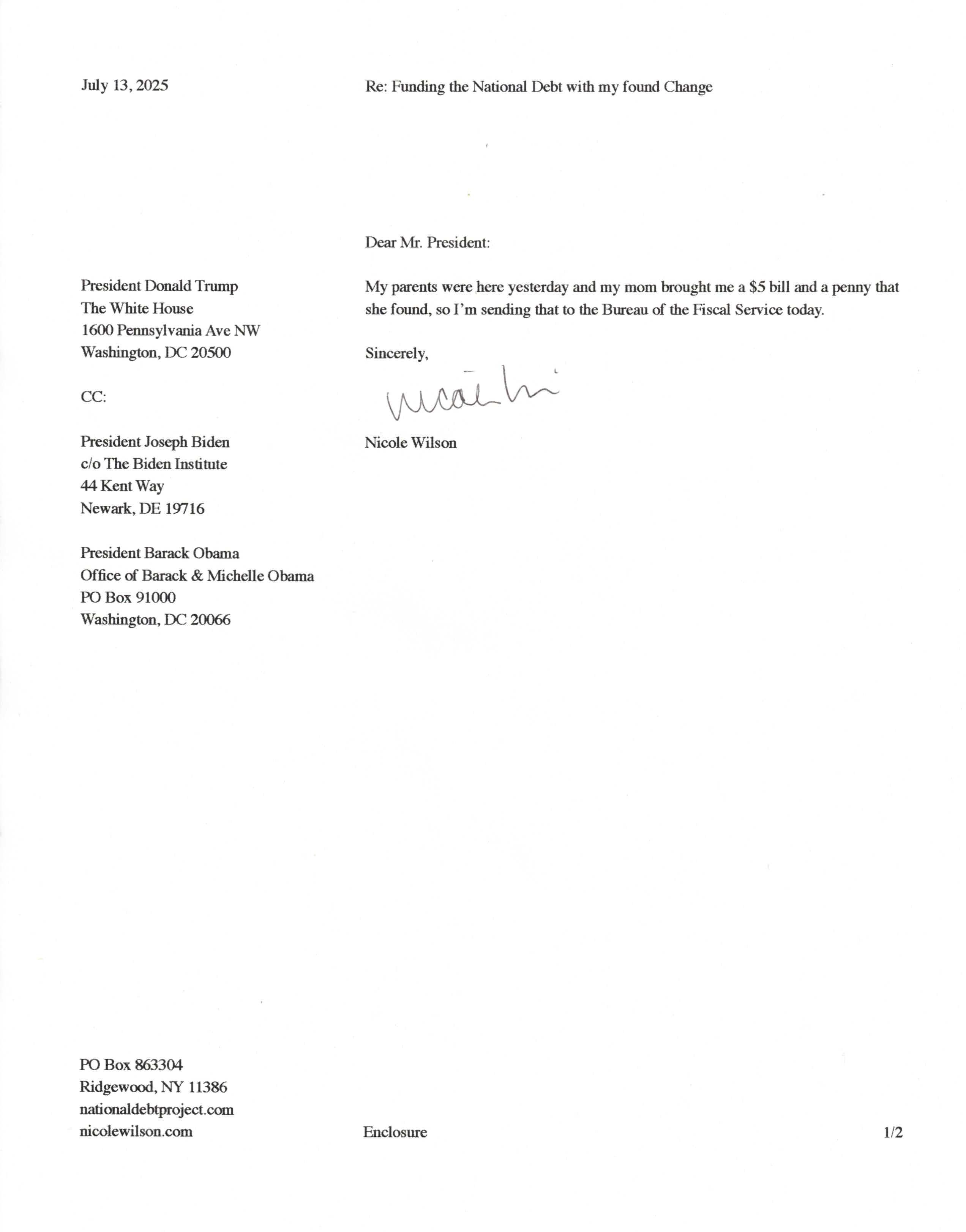 Yet, as I went through each day, I found at least one discarded penny. So, since August 31, 2009, I have sent my found change daily via certified mail to the Bureau of the Fiscal Service (previously the Bureau of the Public Debt), a sector of the Treasury Department whose purpose is to manage the deficit. If by some chance I do not find any change one day, then I send a penny of my own.