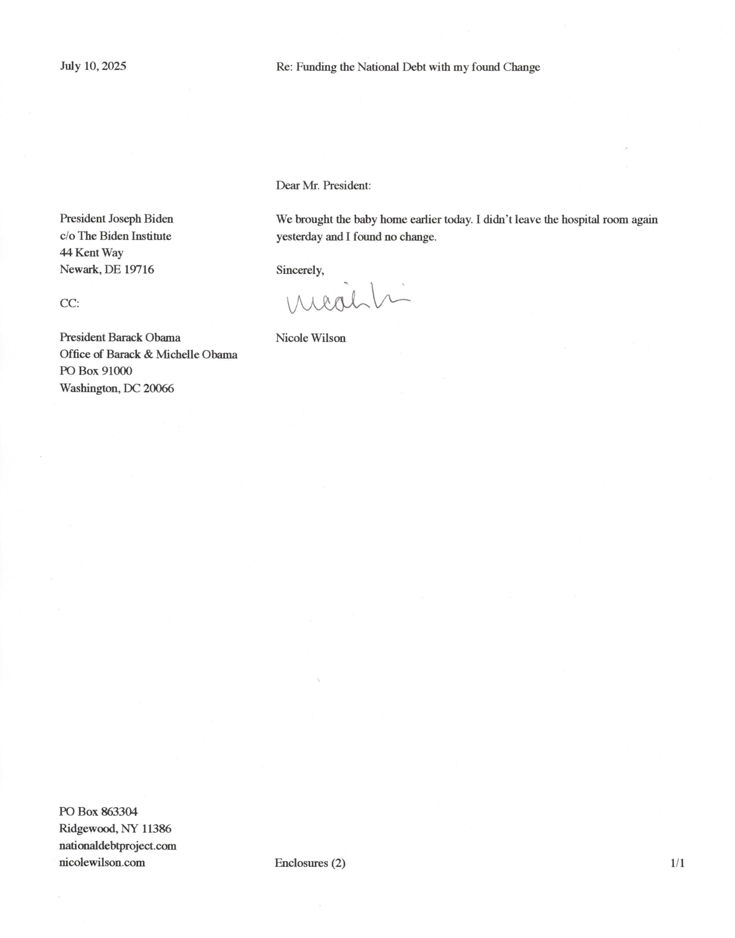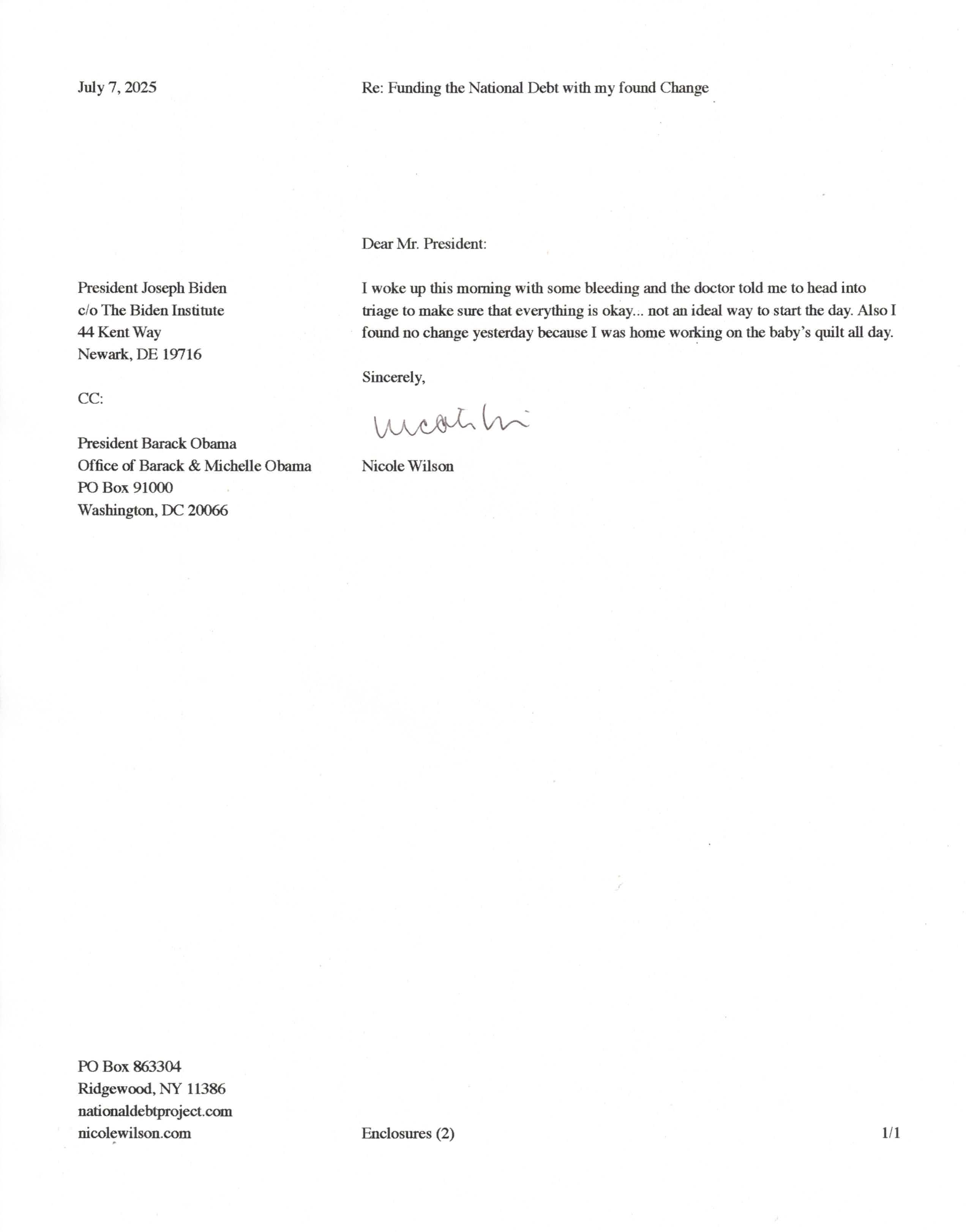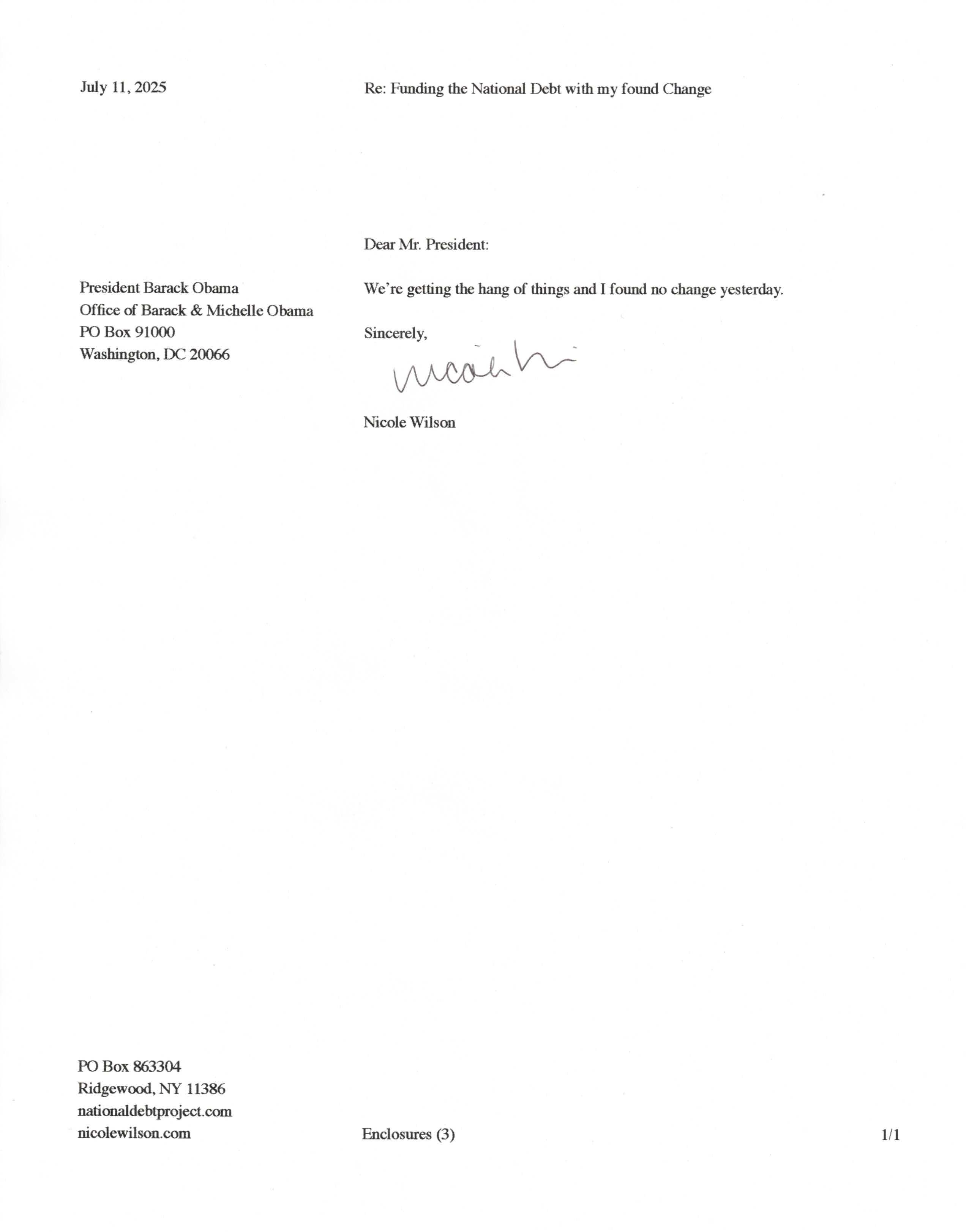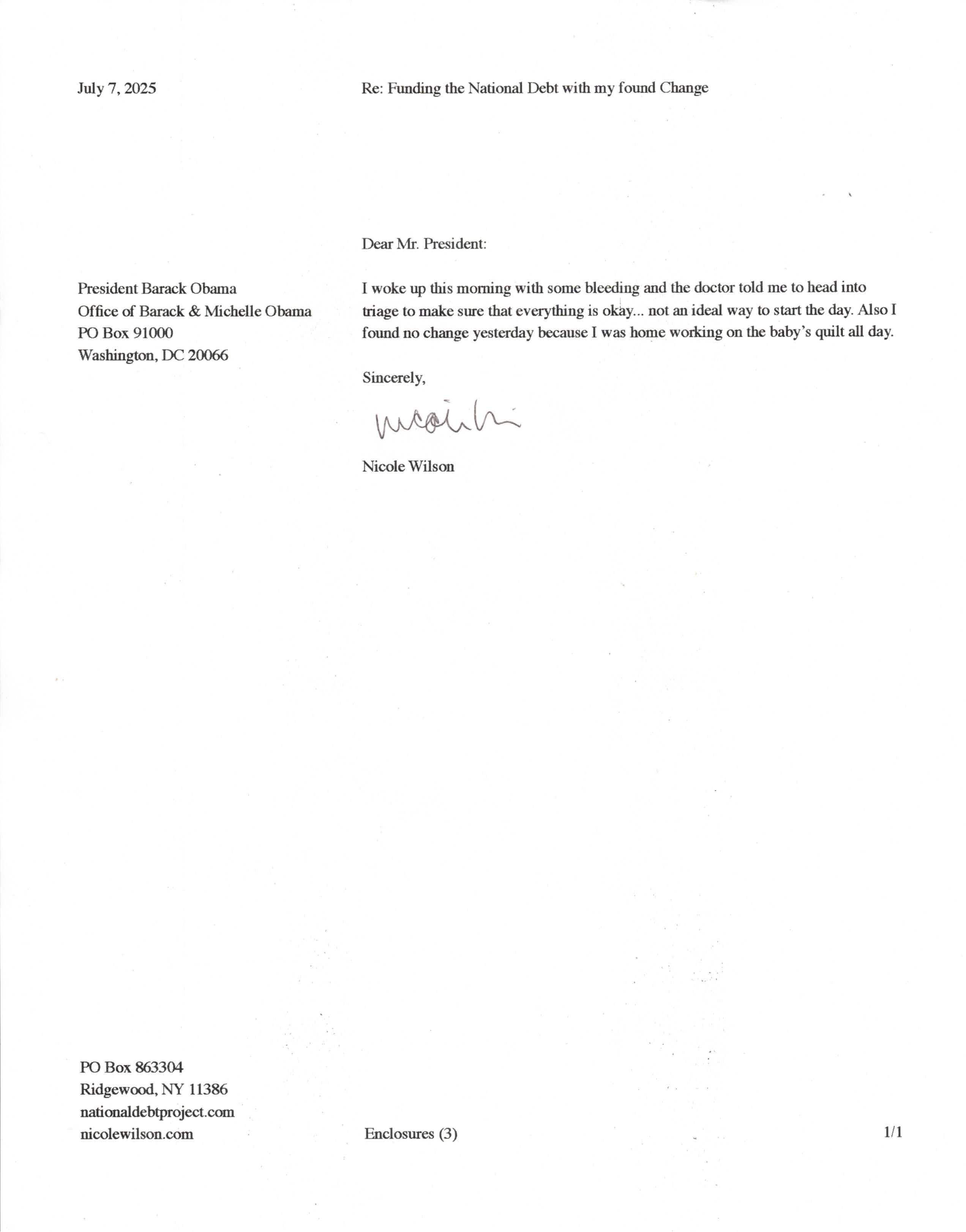 Yet, as I went through each day, I found at least one discarded penny. So, since August 31, 2009, I have sent my found change daily via certified mail to the Bureau of the Fiscal Service (previously the Bureau of the Public Debt), a sector of the Treasury Department whose purpose is to manage the deficit. If by some chance I do not find any change one day, then I send a penny of my own.